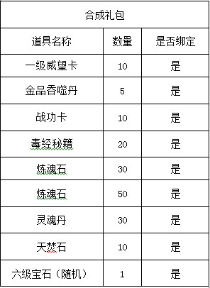 如:使用五级身法石成功合成,获得一个“六级宝石礼包”,打开礼包获得六级身法石一个,同时获得一个合成礼包!