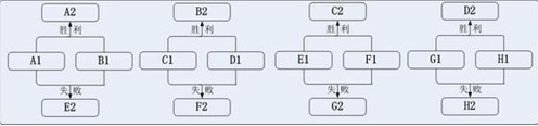 强赛第一轮对阵图:初赛中进入8强的玩家或者队伍,按预赛和初赛的积分排出1-8名