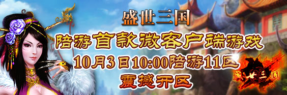 2011年度大作《盛世三国》,是一款以三国题材为背景的大型2D写实类MMORPG,炫丽的职业技能,紧张刺激的追逐战,畅快淋漓的PK,创新的经济系统,逼真的场景带玩家还原真实的三国战场。您只需3秒极速下载微端,便能驰骋于这令人向往三国乱世之中。