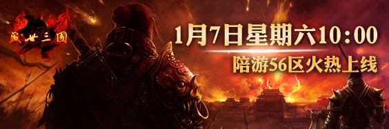 陪游《盛世三国》56区将于1月7日上午10:00震撼开启,与此同时,我们还为各位玩家准备了丰富的活动和好礼,助英雄们驰骋沙场!