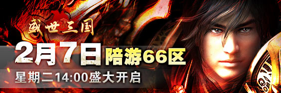陪游《盛世三国》66区将于2月7日下午14:00震撼开启,与此同时,我们还为各位玩家准备了丰富的活动和好礼,助英雄们驰骋沙场!